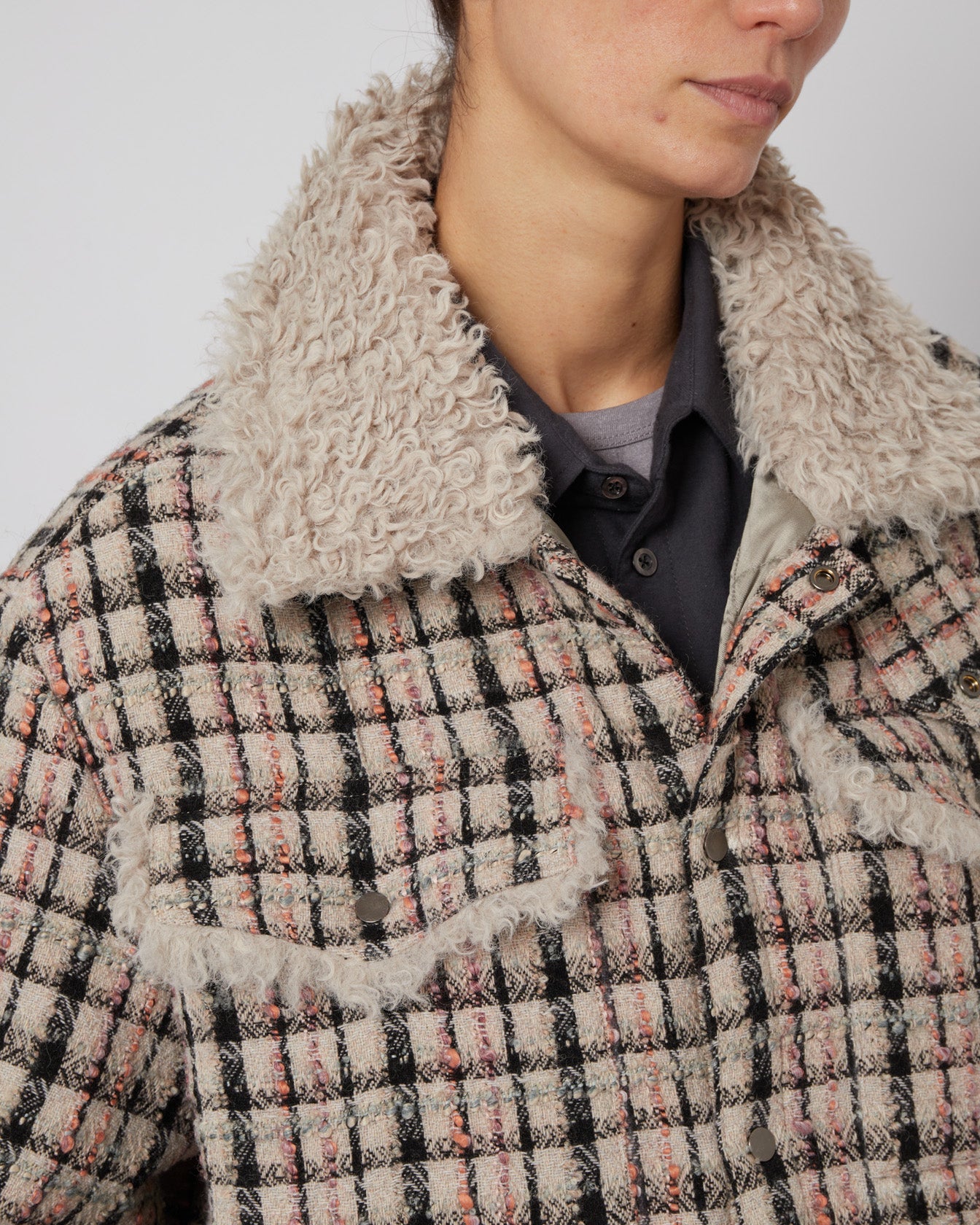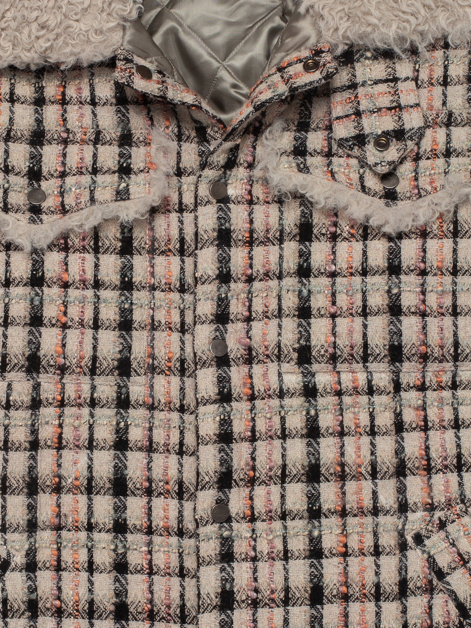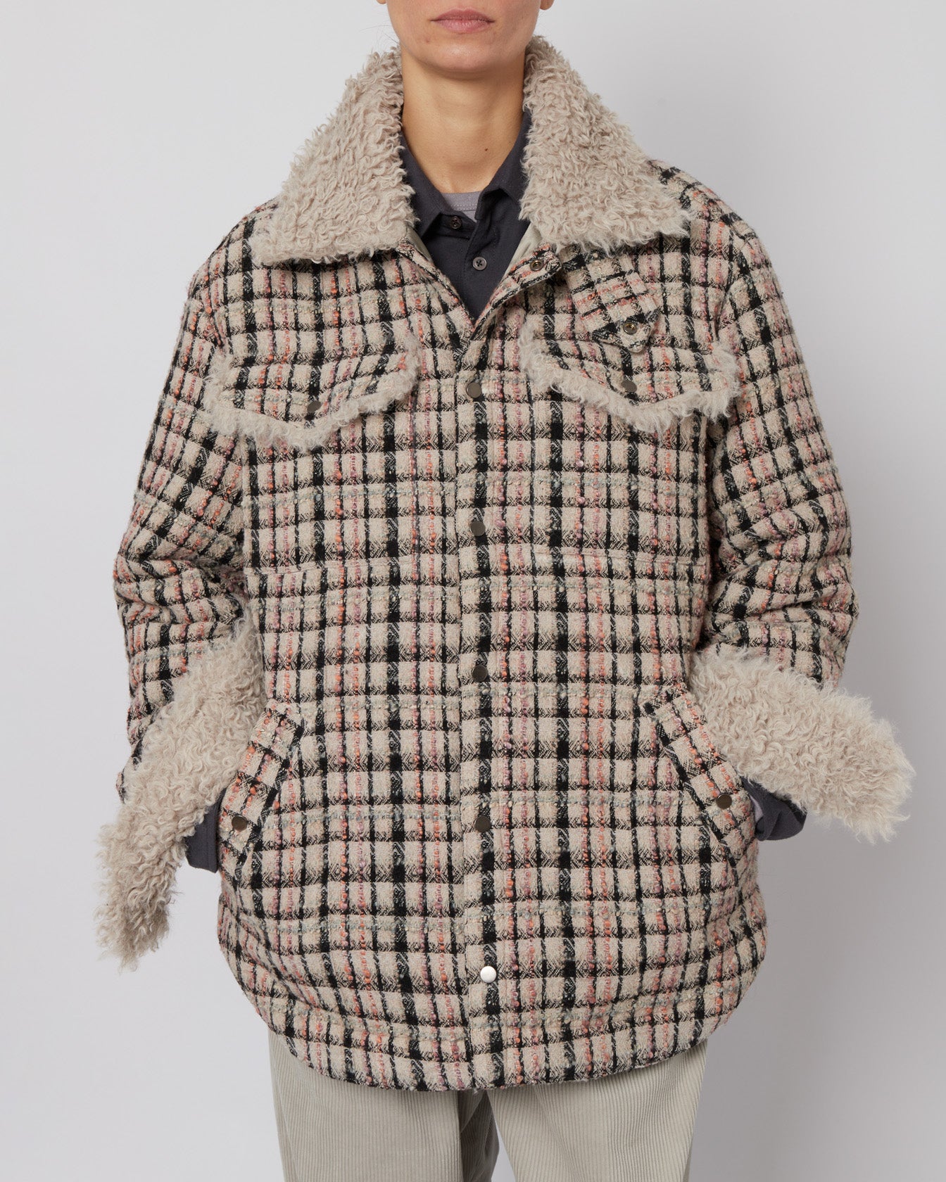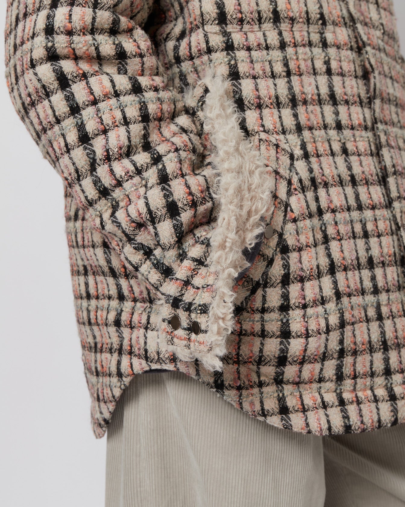 このジャケットはオーバーサイズフィットです。身長に合わせてサイズをお選びいただくと、本来のフィット感をお楽しみいただけます。オーバーサイズ感を抑えたい場合は、ワンサイズ下をお勧めします。