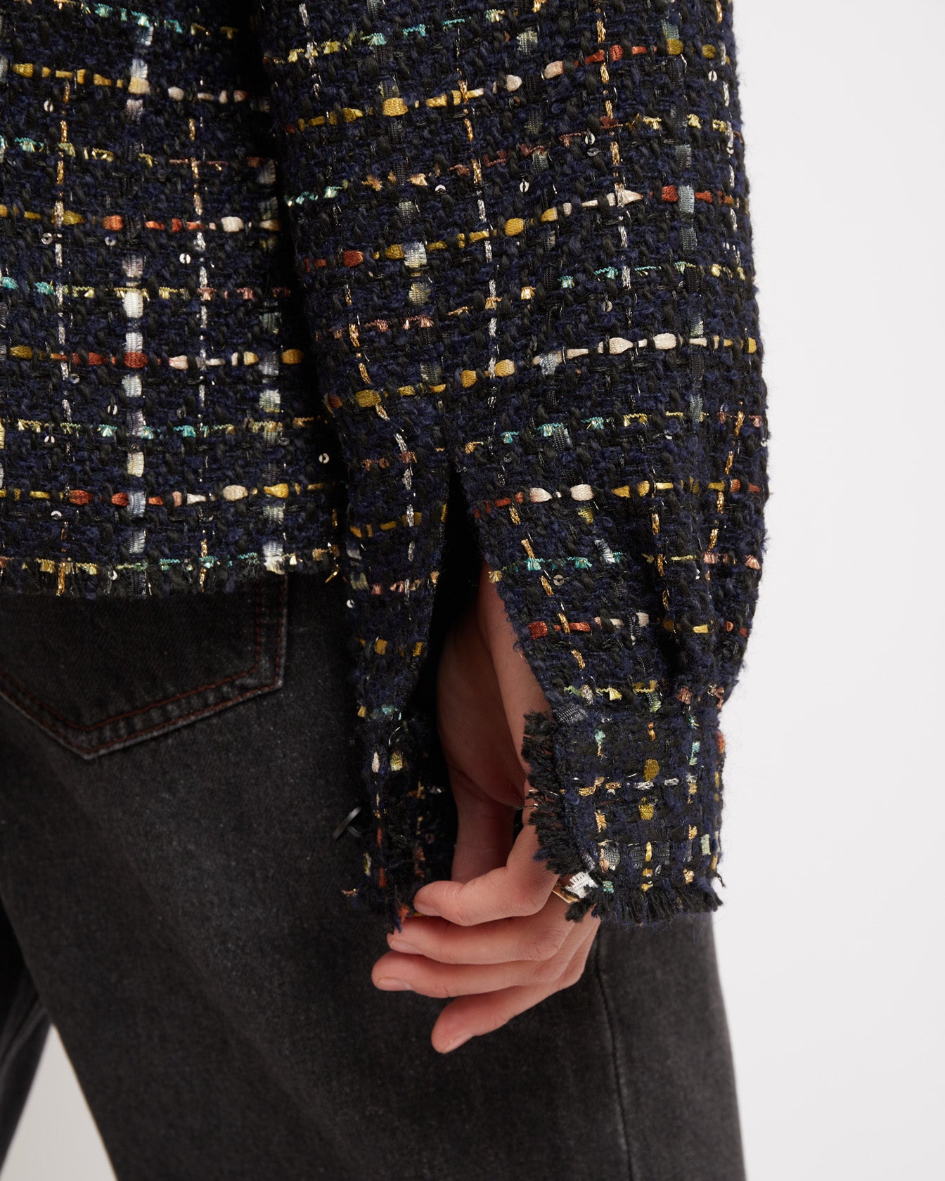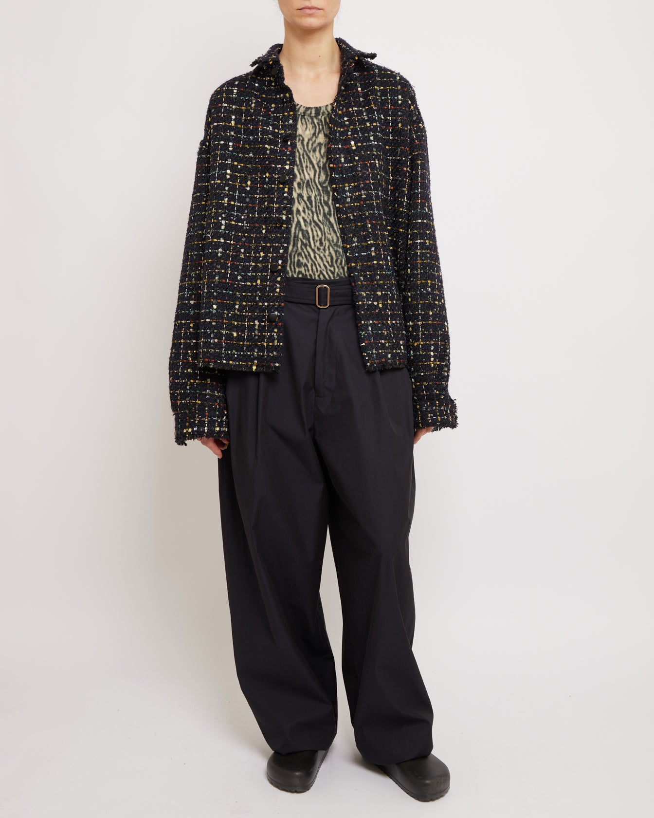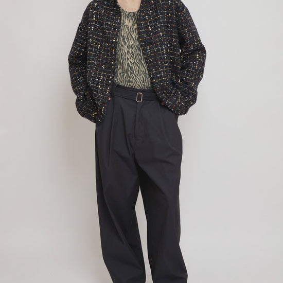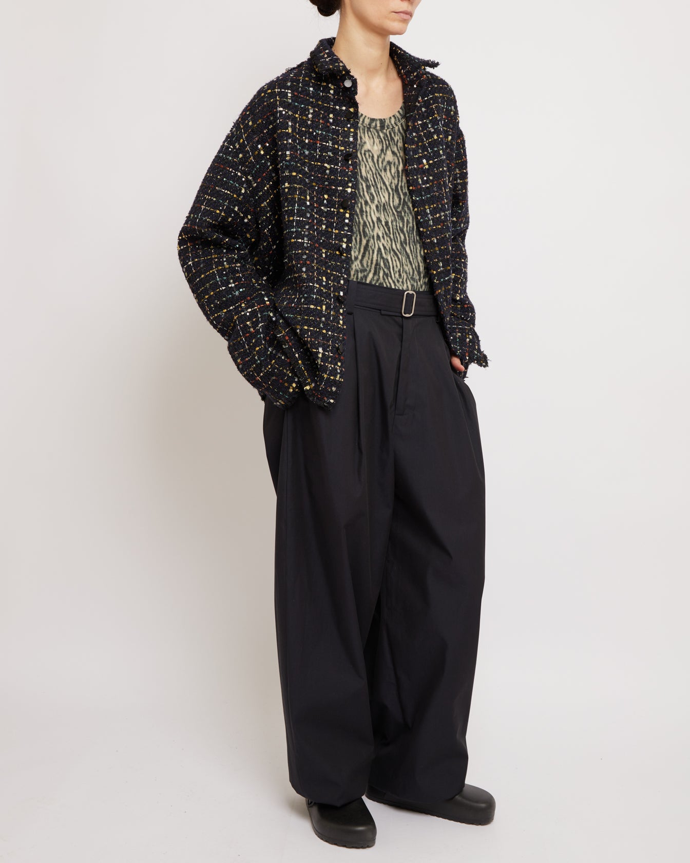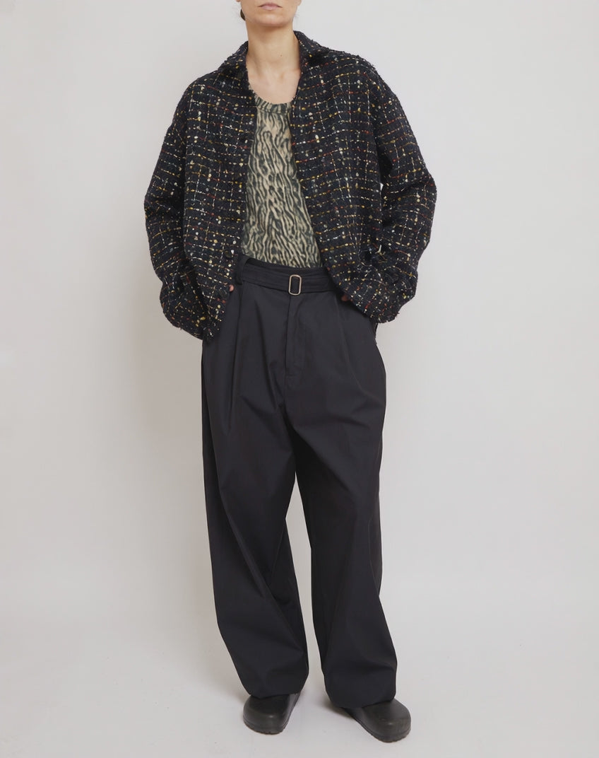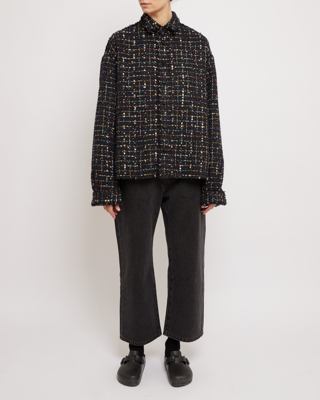 このシャツはクロップド丈でオーバーサイズのフィット感を意図しています。身長に合わせてサイズをお選びいただくとオリジナルのフィット感を、小さめに着こなすとオーバーサイズ感を抑えた着こなしをお楽しみいただけます。