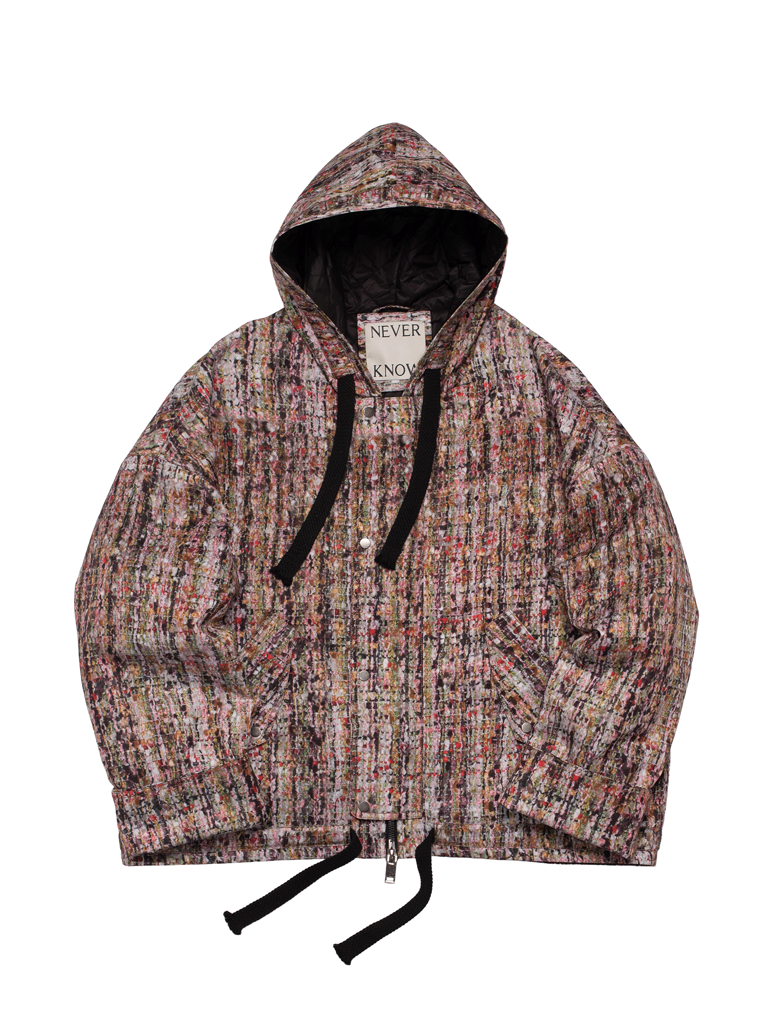 トロンプ・ルイユ ライラックツイード オーバーサイズ フード付きジャケット