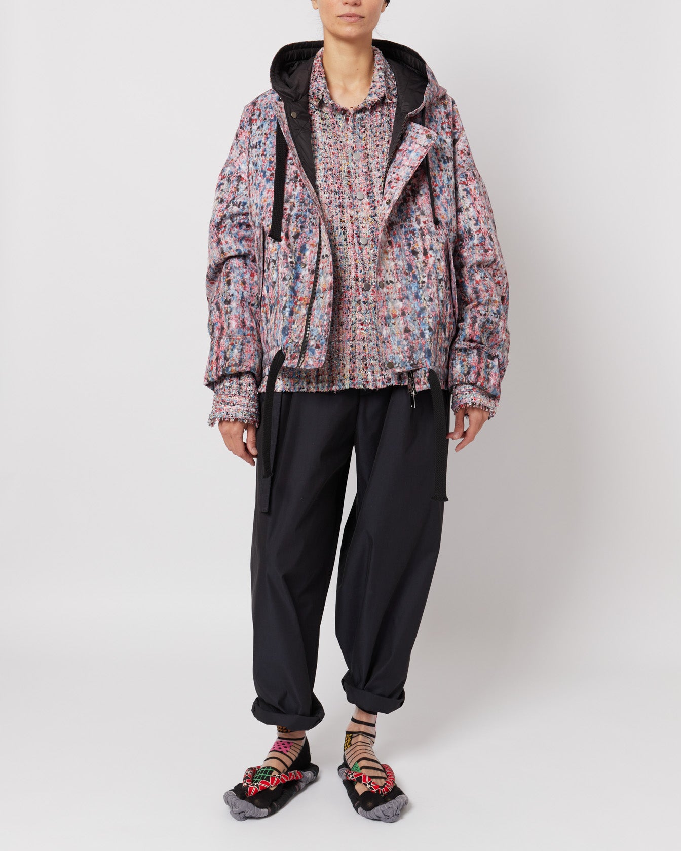トロンプ・ルイユ ライラックツイード オーバーサイズ フード付きジャケット