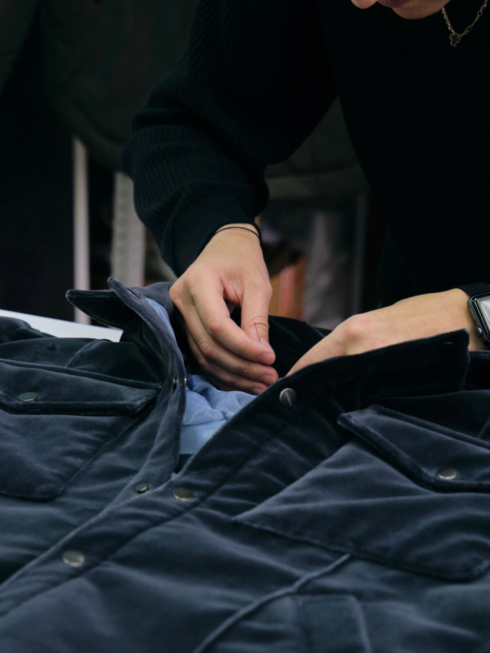 We use certified Italian and Japanese fabrics, Belgium insulations Isosoft, and high-quality trims and zips from trusted Chinese manufacturers. We avoid using animal-origin materials and focus on natural fibers and post-consumer synthetic materials. Each NEVER KNOW garment is entirely assembled by one person as it used to be in a couture atelier to ensure attention to quality, resulting in a 3-5 week lead time for made-to-order orders. Finally, each garment is inspected and packaged with care and love.