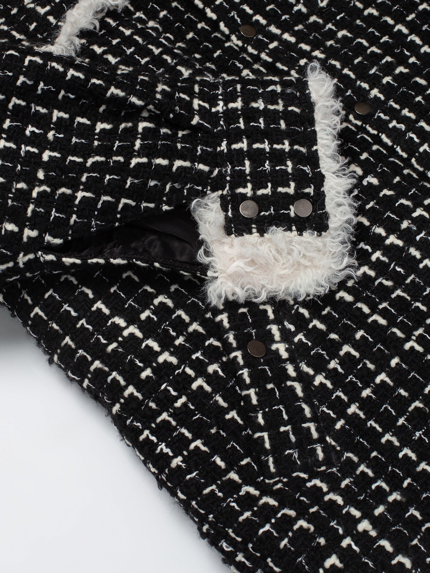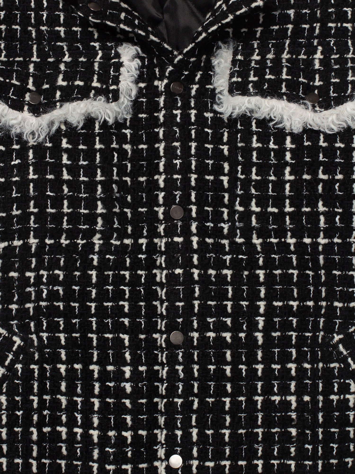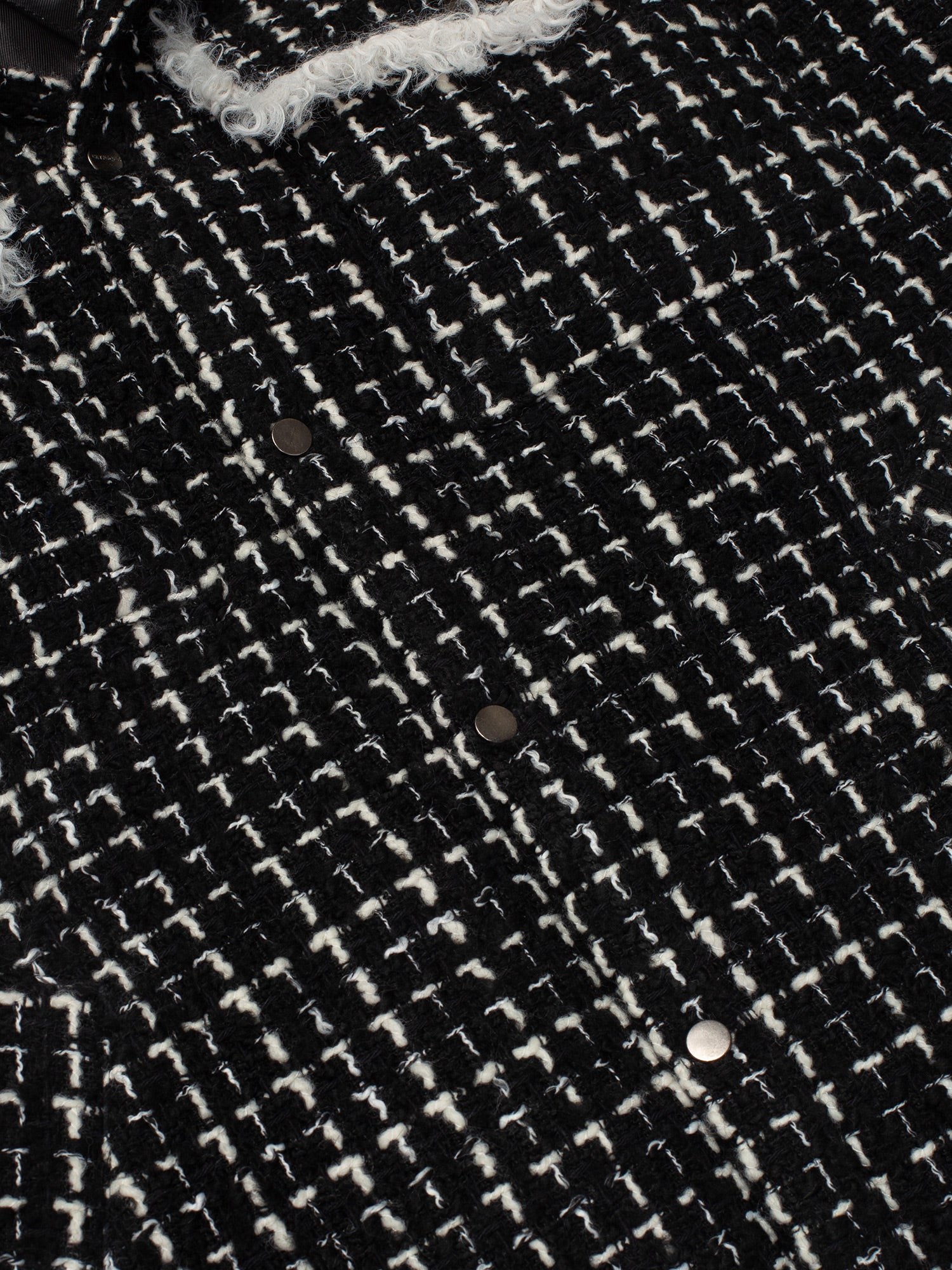 Black & White Tweed Oversized Shirt Jacket with Faux Fur